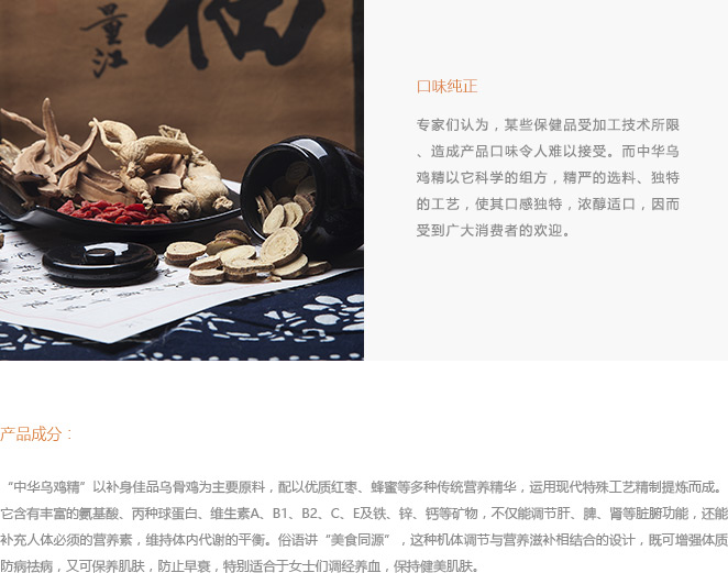 中華烏雞精口服液具有健脾補氣,益腎添精,養血安神,調補沖任等功效,調和陰陽,男女同補。