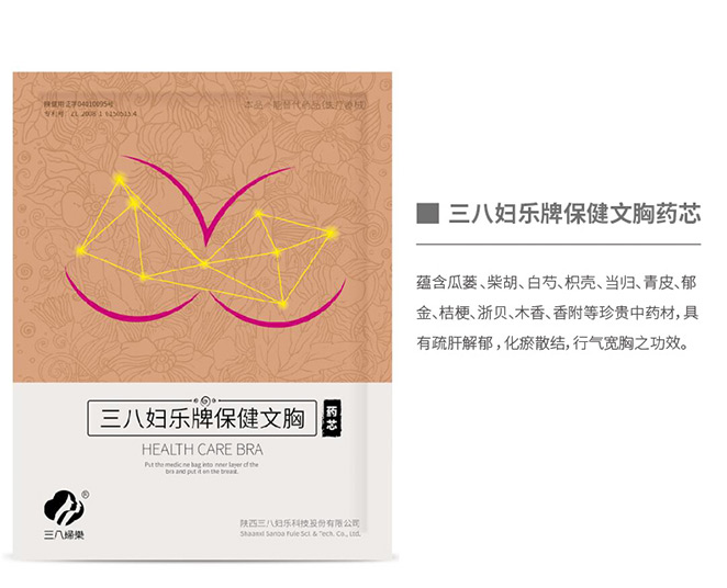 安琢健體內衣藥芯是三八婦樂研發創新中心聯袂陜西中醫大學專家研制,陜西食品藥品監督管理局批準生產,獲國家發明專利,藥芯采用24味名貴中草藥精華,由內而外全面呵護女性健康。根據“內病外治、通則不痛”理論使藥物作用于乳腺及腹部穴位,透皮吸收、穴位吸收、經絡傳導,呵護嬌嫩乳房