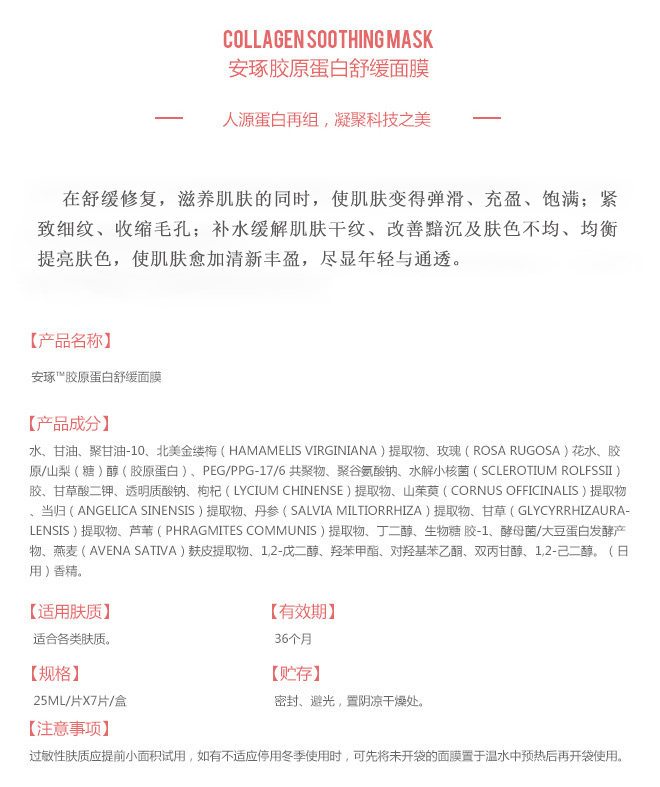 安琢膠原蛋白舒緩面膜
