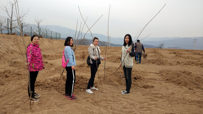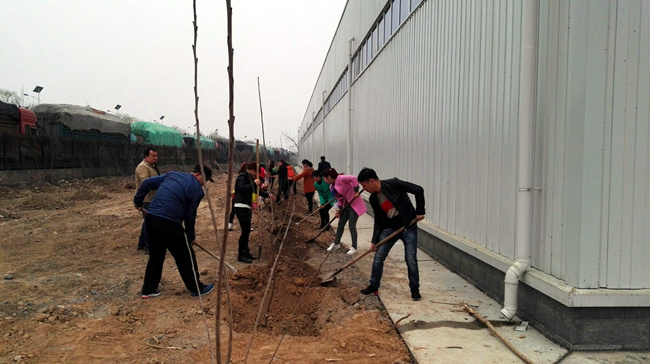 每人都種下屬于自己的樹苗,培育他茁壯成長。種下一顆小樹苗,就是種下一粒小小的希望,看著自己的小樹能夠茁壯成長,心里更有許多喜悅。希望有一天它能長成參天大樹,守護(hù)一方土地,滋潤著一方人民。很多的希望都是需要行動的,我們將會經(jīng)常給它們澆水、施肥、除草,時刻關(guān)注它們的成長情況。植樹節(jié)的活動給大家?guī)砹嗽S多歡樂,嬌弱的女職工們紛紛變成了女漢子,西裝革履的領(lǐng)導(dǎo)也變成了辛勤的園丁,大家揮灑著汗水,洋溢著歡笑。
