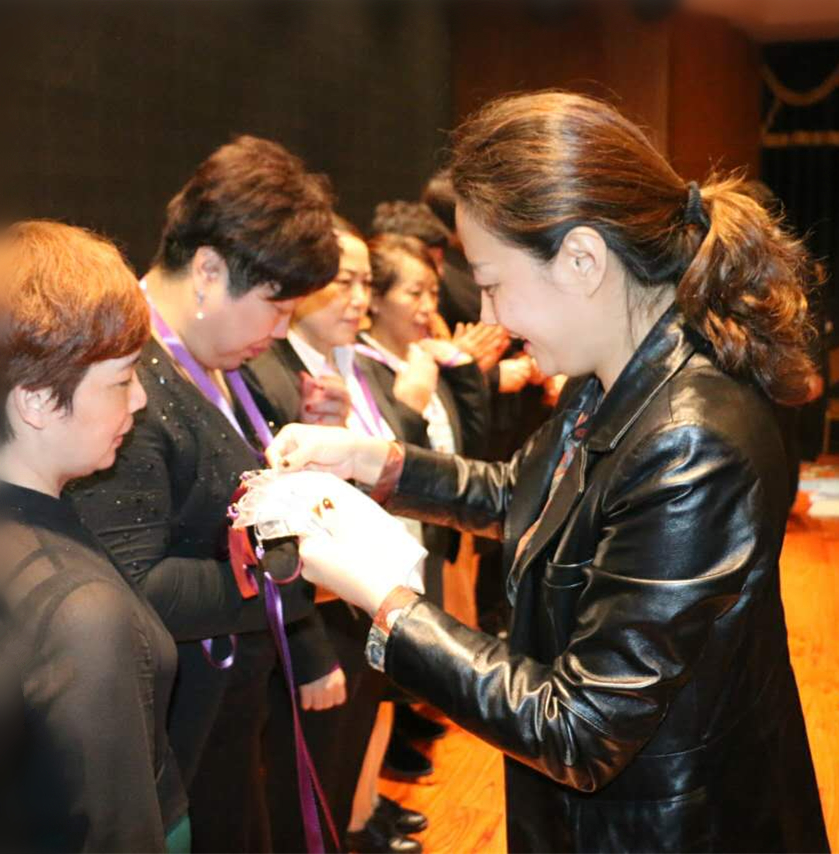 三八婦樂集團副總經理郭萌為學員頒發(fā)“直銷員”證