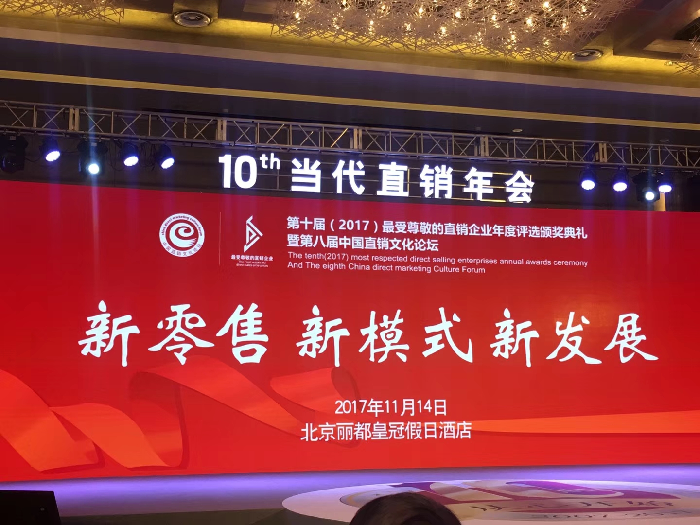 2017年11月13-15日,“第十屆最受尊敬的直銷企業年度評選頒獎典禮暨第八屆中國直銷文化論壇”在北京麗都皇冠假日酒店如期舉行。此次活動由中國直銷研究院、當代直銷全媒體中心主辦,全國商業媒體聯盟、直銷企業俱樂部、世界貿易網點聯盟聯合主辦,中國直銷行業整體形象提升促進委員會、中國企業文化促進會、健康中國組委會協辦,廣州直銷企業協會、天津直銷自治聯盟、湖南門店及連鎖銷售協會、山東直銷企業協會支持,營訊傳媒集團承辦。