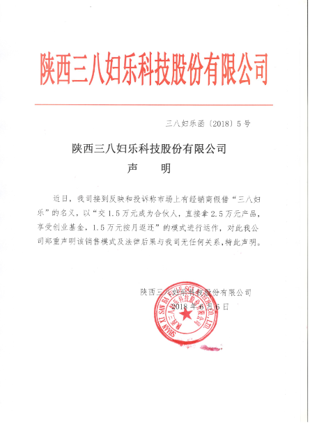 陜西三八婦樂科技股份有限公司聲明