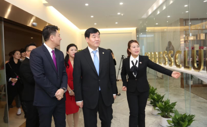 李南陪同袁曉峰董事長(中)視察首家“婧媛薈”