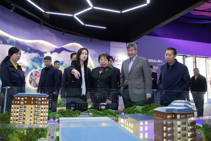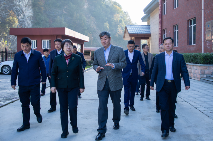袁曉峰董事長(zhǎng)向商洛市委書記陳俊(左二)、柞水縣委書記陳璇(右一)、柞水縣縣長(zhǎng)崔孝栓(左一)介紹企業(yè)情況