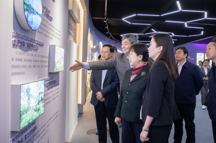 隨后,陳俊書記一行走進(jìn)了三八婦樂(lè)“青囊集-秦嶺藥用植物文化體驗(yàn)中心”,在企業(yè)文化展示區(qū)觀看了企業(yè)宣傳片以及企業(yè)文化展示墻;在產(chǎn)品展示區(qū),對(duì)三八婦樂(lè)特醫(yī)食品生產(chǎn)的多款產(chǎn)品進(jìn)行了了解;在互動(dòng)體驗(yàn)區(qū),聽取了工作人員介紹之后,陳俊書記一行對(duì)三八婦樂(lè)“9D聲吶技術(shù)太空艙”、“健康關(guān)鍵指標(biāo)快檢一體機(jī)”等高科技健康體檢設(shè)備表現(xiàn)出了極大的興趣,并進(jìn)行了體驗(yàn)。
