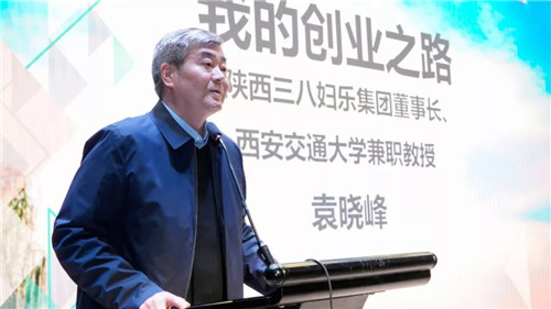 身為西安交通大學兼職教授的三八婦樂集團董事長袁曉峰做了題為《我的創業歷程》的報告。袁曉峰教授首先對西安交通大學生命科學與技術學院對于三八婦樂科技研發的支持,同時對獲得獎學金的同學表示祝賀,他從自己的創業歷程、企業理念、科研投入等方面向與會師生詳細介紹了三八婦樂集團的發展情況。