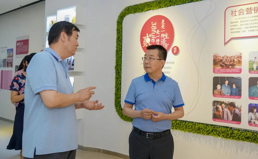 袁曉峰董事長向程津慶副主任一行介紹了企業的發展和企業上市進展情況,并就健康產業園二期項目的建設情況作了匯報,他說,三八婦樂健康產業園二期項目占地35畝,主要包括化妝品生產車間、新的研發中心及樂屋直播基地等,計劃建筑面積5萬余平方米,預計于今年年底率先建成新的研發中心和樂屋直播基地,并投入使用。
