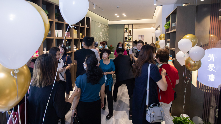 上午9時,天空籠罩著蒙蒙細雨,卻掩蓋不了開業慶典熱鬧的氛圍。人群中朗朗笑聲為開業慶典做了很好的點綴,熱烈而又洪亮的掌聲拉開了開業慶典的帷幕。陜西省政協醫藥衛生體育委員會副主任劉昌軍,中國針灸學會副會長、陜西省針灸學會會長、陜西中醫藥大學原副校長劉智斌教授,中國生殖健康產業協會副會長、三八婦樂集團董事長袁曉峰教授,三八婦樂集團副董事長韓美寧和眾多三八婦樂優秀志愿者代表共同見證了青囊集中華循經針推輕醫館西安文興巷店的開業儀式。館內、外裝飾及陳設充分體現了中國傳統文化特色,理療區、美容區、接待區、茶歇區、產品體驗區等一一俱全,古樸的裝扮,典雅的設計,透露出現代與古典的融合,隨處都能感受到傳統醫學文化的博大精深。