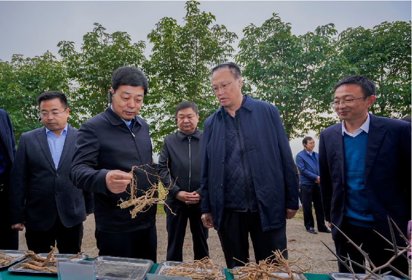 向淳化縣委書記郭立志(左二)等領導介紹中草藥