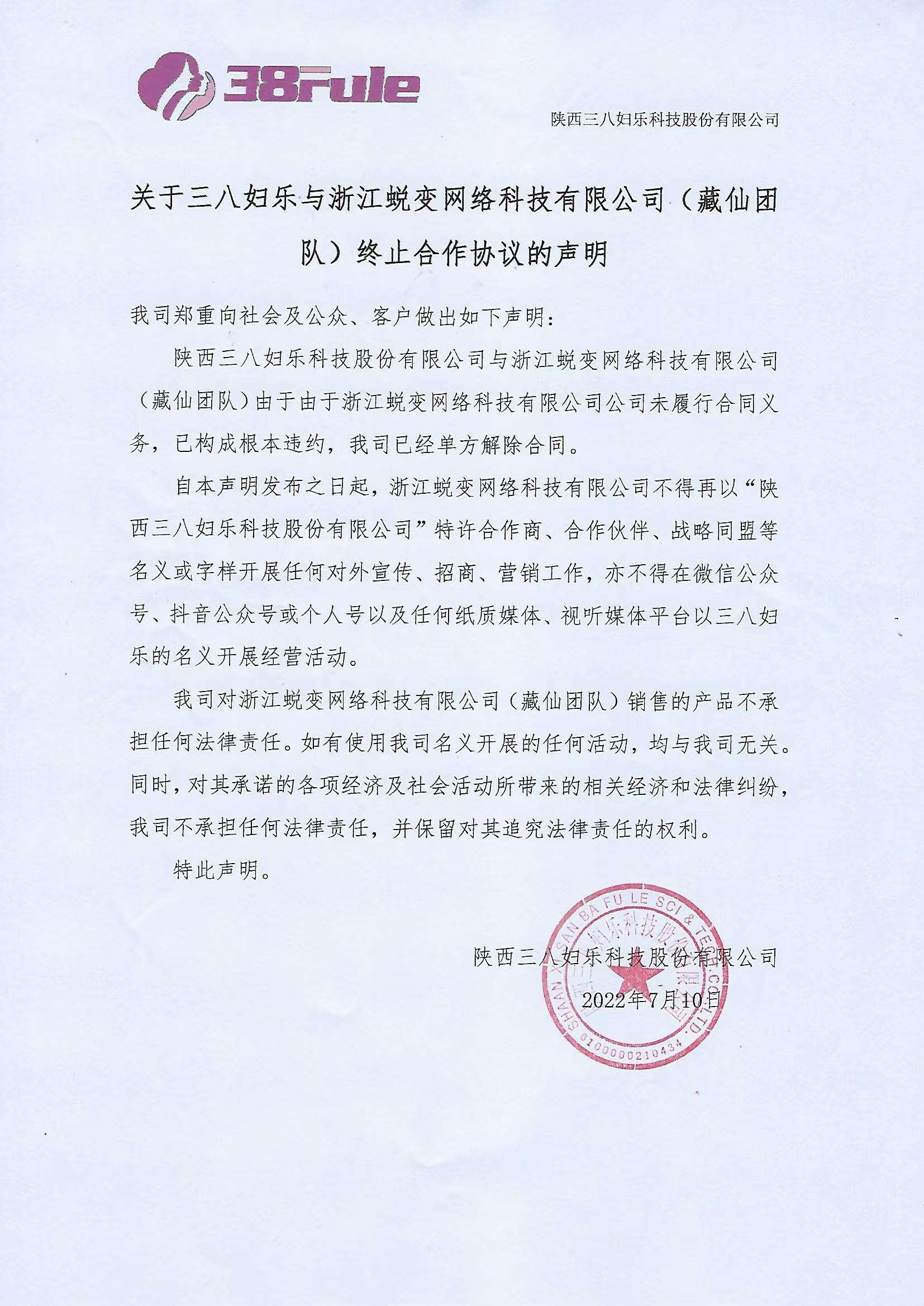 近日,我司接到反映和投訴稱市場上有經銷商假借“三八婦樂”的名義,以“交1.5萬元成為合伙人,直接拿2.5萬元產品,享受創(chuàng)業(yè)基金,1.5萬元按月返還”的模式進行運作,對此我公司鄭重聲明...